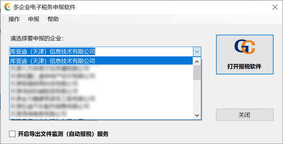 开启导出文件监测报税服务,可将导出的电子申报文件自动完成税务申报、扣款、截屏